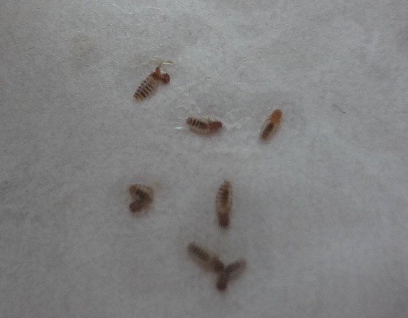 - le larve: prive di zampe ed allungate, si annidano in luoghi umidi e lontani dalla luce, nutrendosi di pelle.