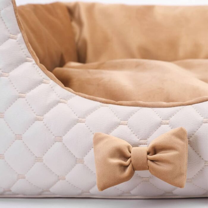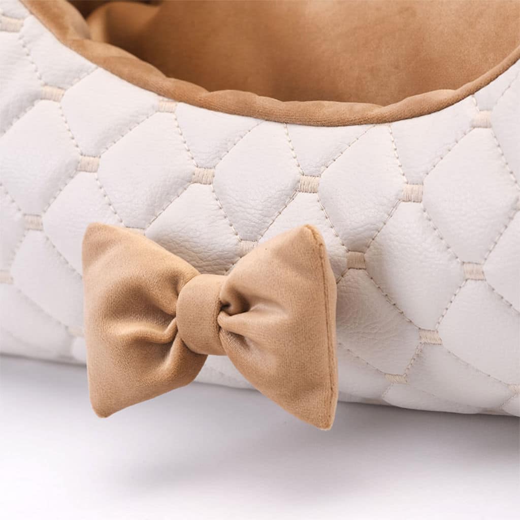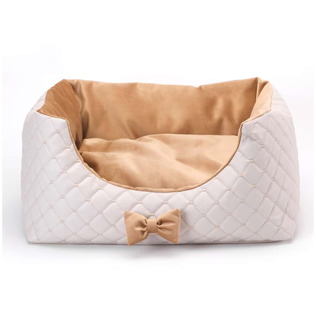 Cuccia ecopelle trapuntata con in interno vellutino beige. Interamente sfoderabile.