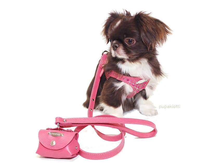 Diamond. Set pettorina e guinzaglio con porta sacchetti in pelle per cane. linea Diamond